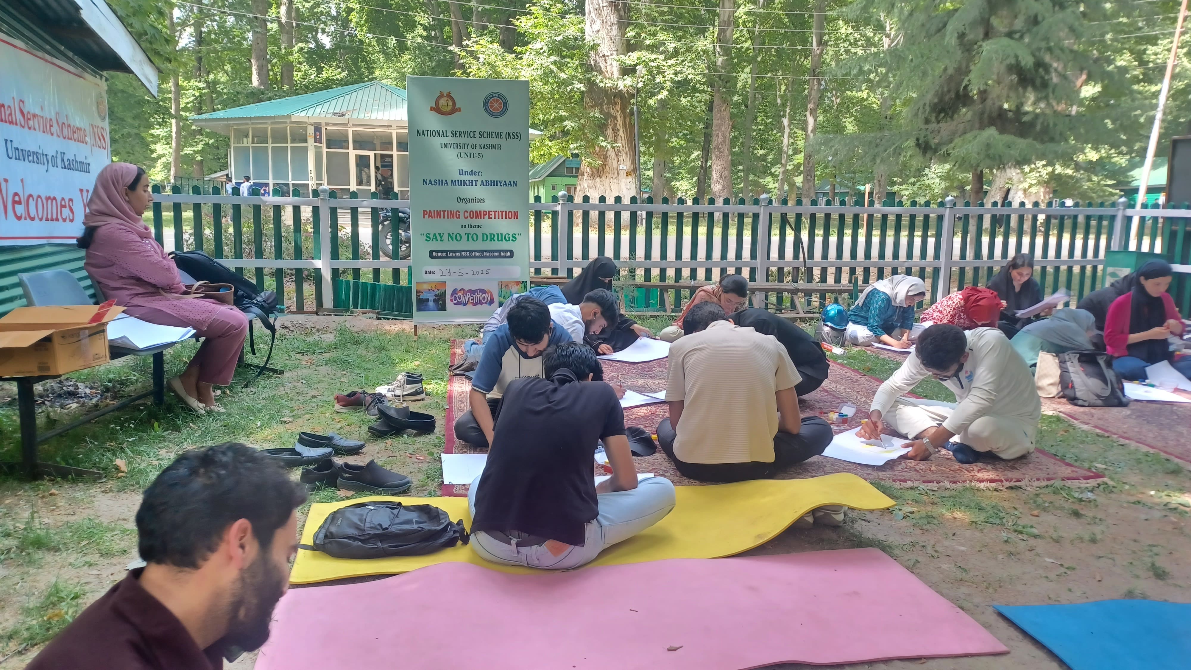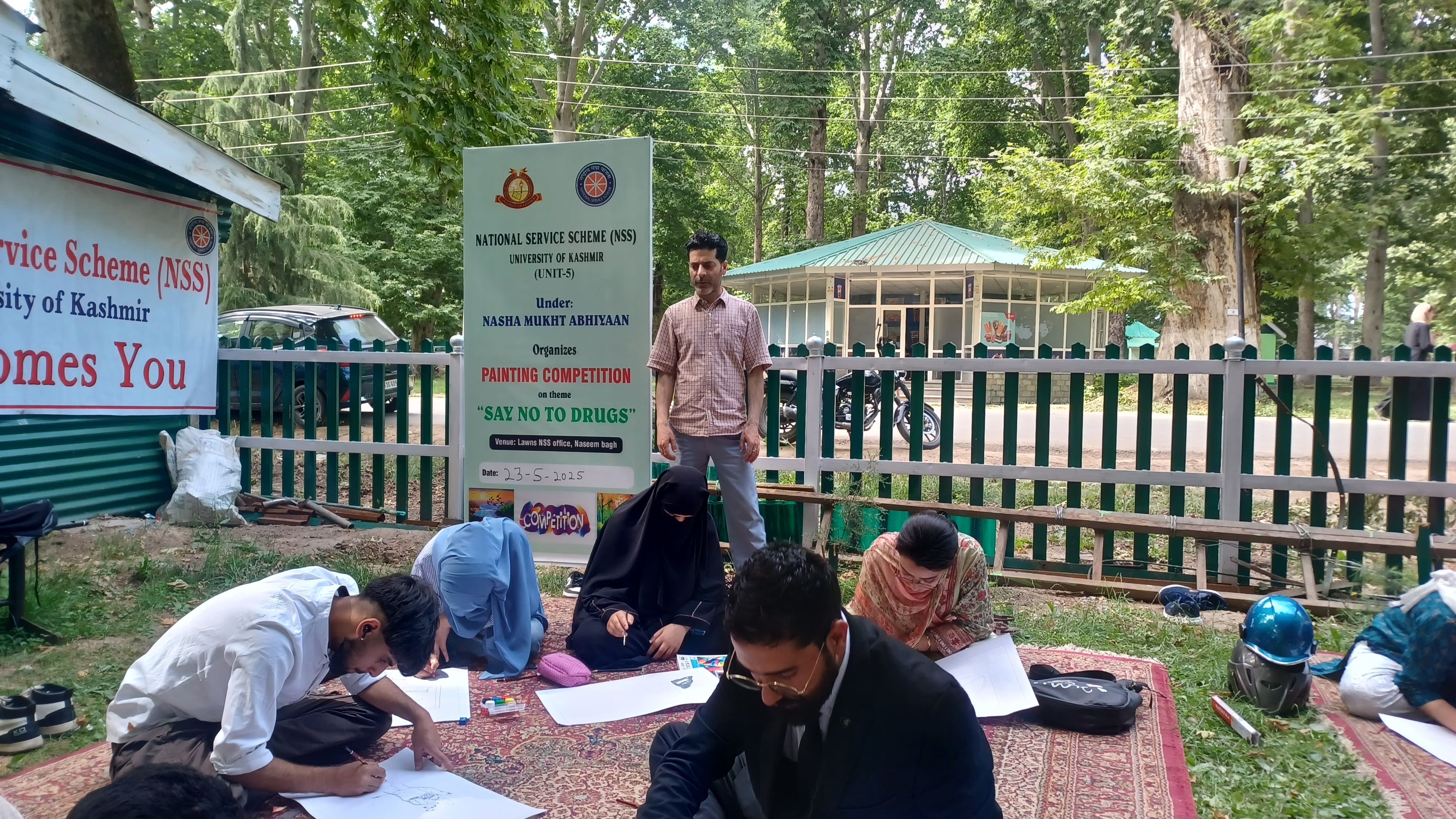 The National Service Scheme (NSS), University of Kashmir, organised a Painting Competition under the "Nasha Mukht Abhiyaan" to promote awareness against drug abuse. The event, themed "Say No to Drugs," encouraged participants to express their creativity in support of a drug-free society. It was held on 23rd May 2025 at 02:00 PM in the front lawn of the NSS, University of Kashmir.
